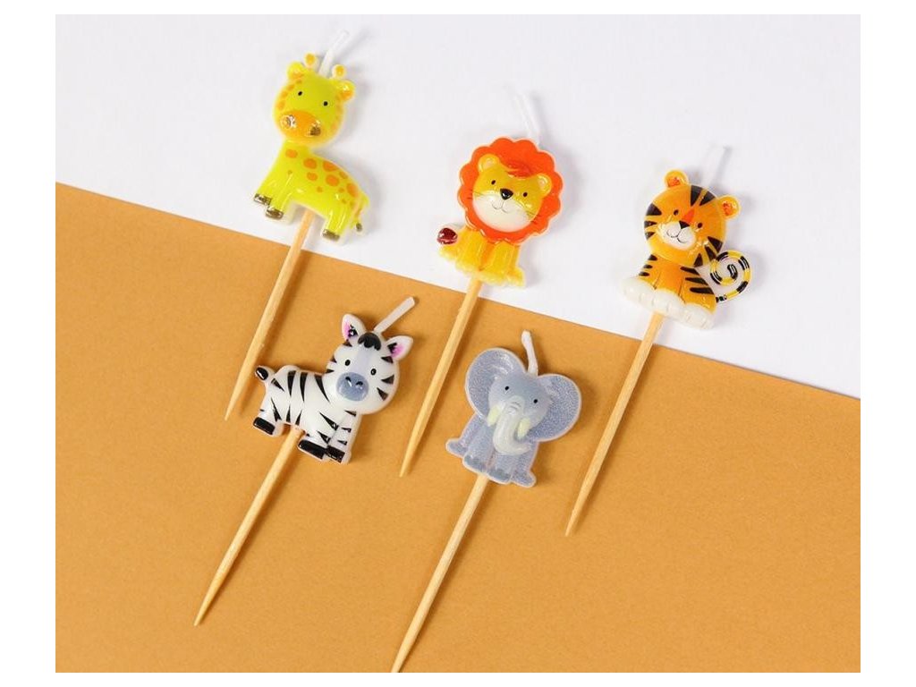 Animals, Állatos tortagyertya, gyertya szett 5 db-osMéret: 3 cm (7 cm pálcával)