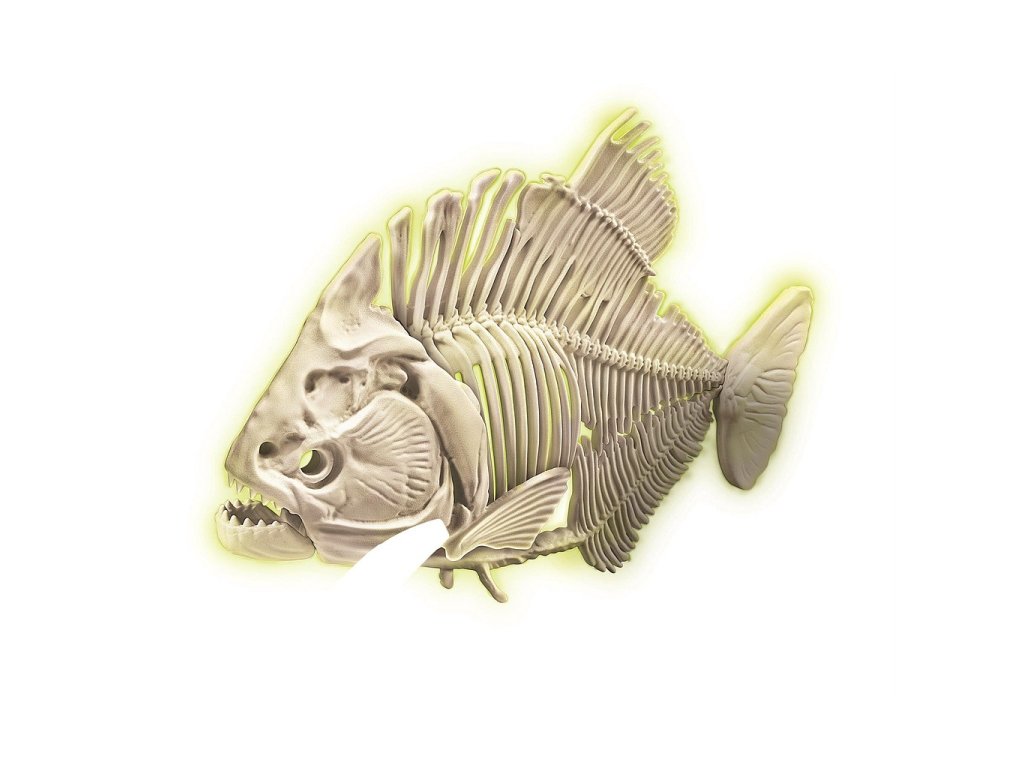 Pomocí přiloženého kladívka a dlátka děti postupně odkrývají jednotlivé části kostry. Po vykopání všech dílů lze kostru sestavit do podoby realistického modelu pirani. Zajímavostí je, že kostra po sestavení svítí ve tmě, což dodává modelu ještě atraktivnější vzhled.