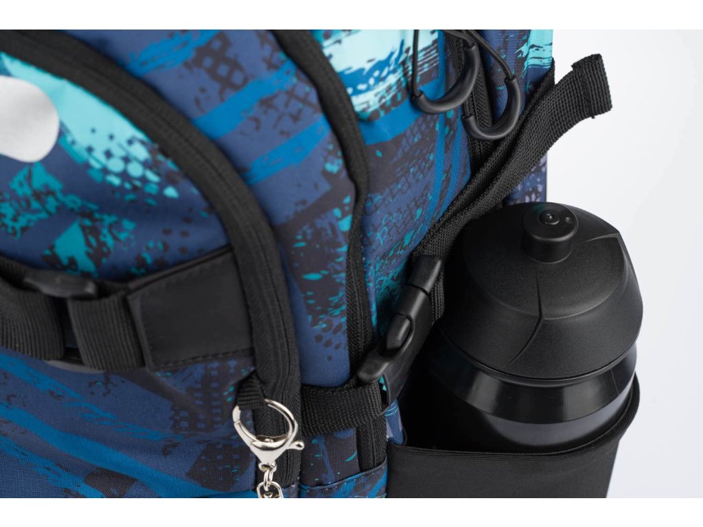 • Boční kapsy z elastického materiálu, které jsou vhodné pro jednu z našich láhví na pití.