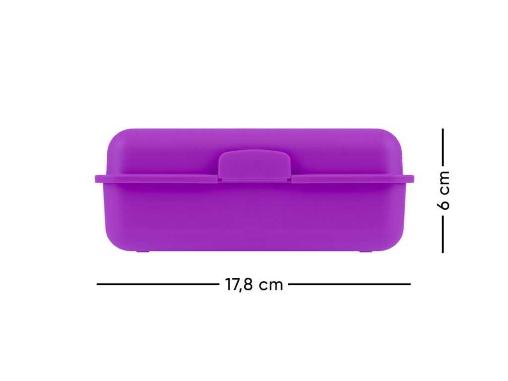 • Plastový box na svačinu.• Box má uzavírání na jeden zámek a obsahuje dělicí přepážku.