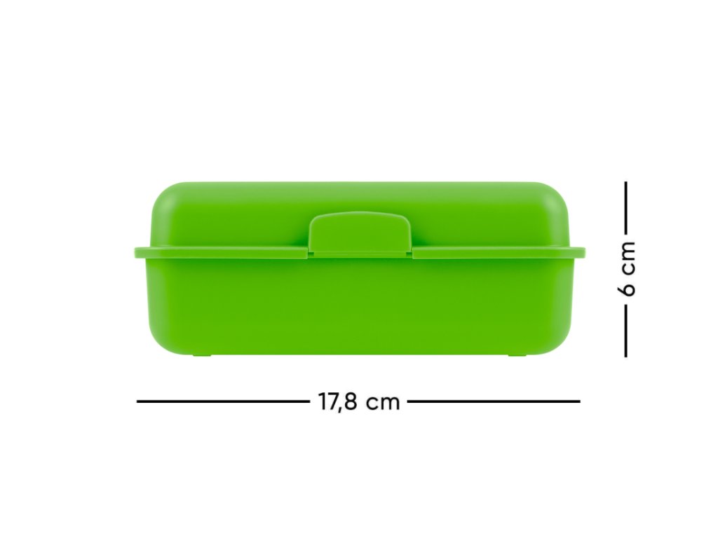 • Plastový box na svačinu.• Box má uzavírání na jeden zámek a obsahuje dělicí přepážku.