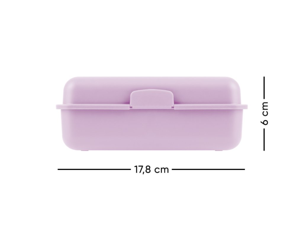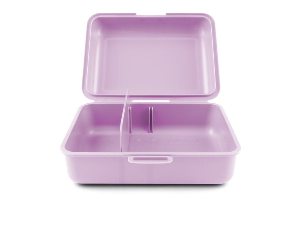• Plastový box na svačinu ve fialové barvě.• Box má uzavírání na jeden zámek a dělicí přepážku.