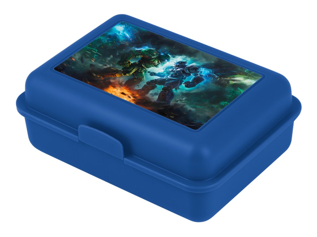 Stylový plastový box na svačinu ROBOTI v modré barvě je ideální volbou pro kluky, kteří milují svět robotů a počítačových her. Praktický svačinový box zaujme moderním herním motivem na víku a zároveň splní každodenní potřeby do školy, na výlety i kroužky.