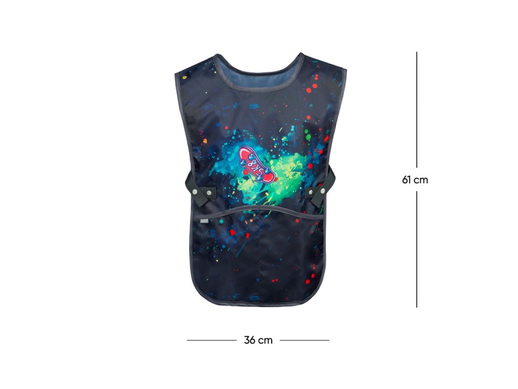 • Dětská zástěra na výtvarnou výchovu, pracovní činnosti a další kroužky.• V dolní části zástěry jsou dvě kapsy.