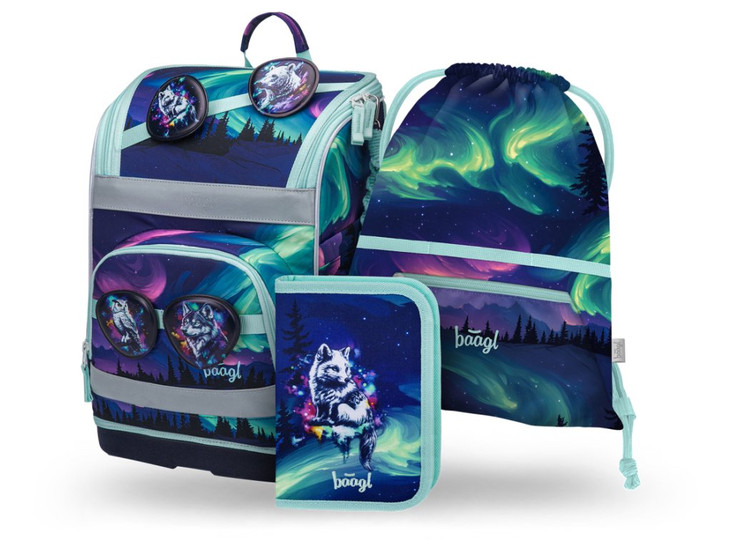 BAAGL SET 3 Zippy Plus Aurora: aktovka, penál, sáček GRS
