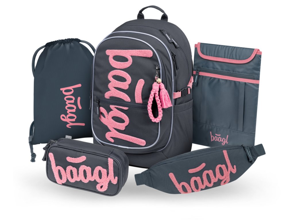 BAAGL SET 5 Core Logo růžový: batoh, penál, sáček, ledvinka, obal na notebook GRS