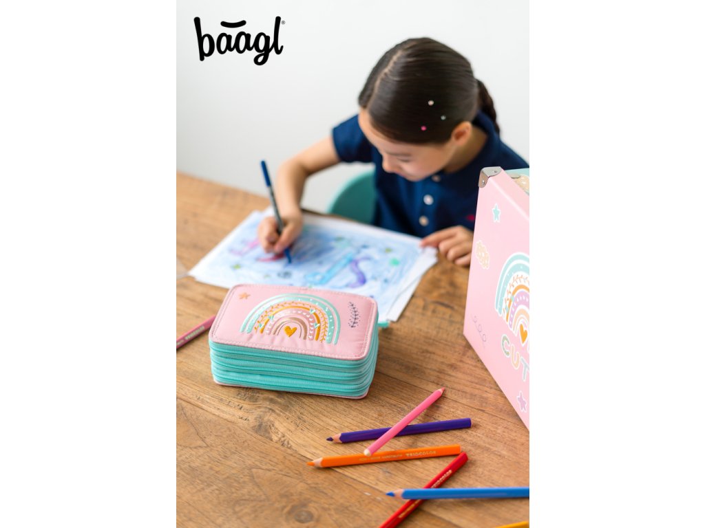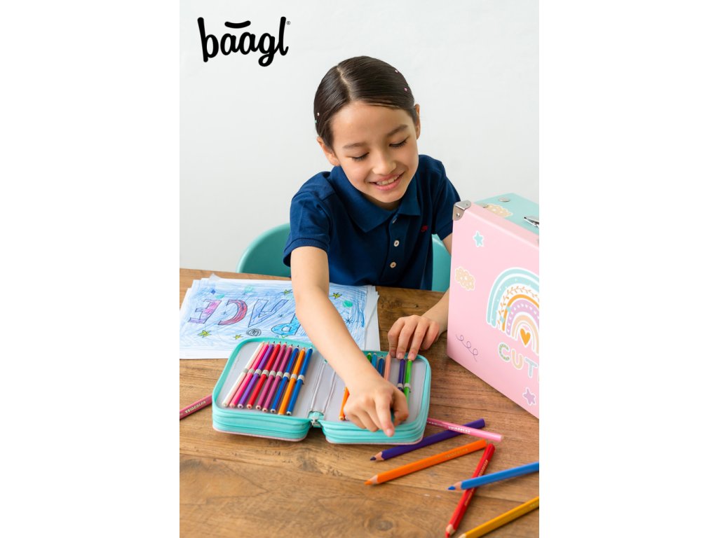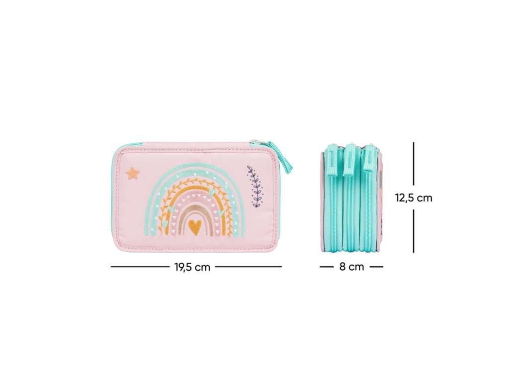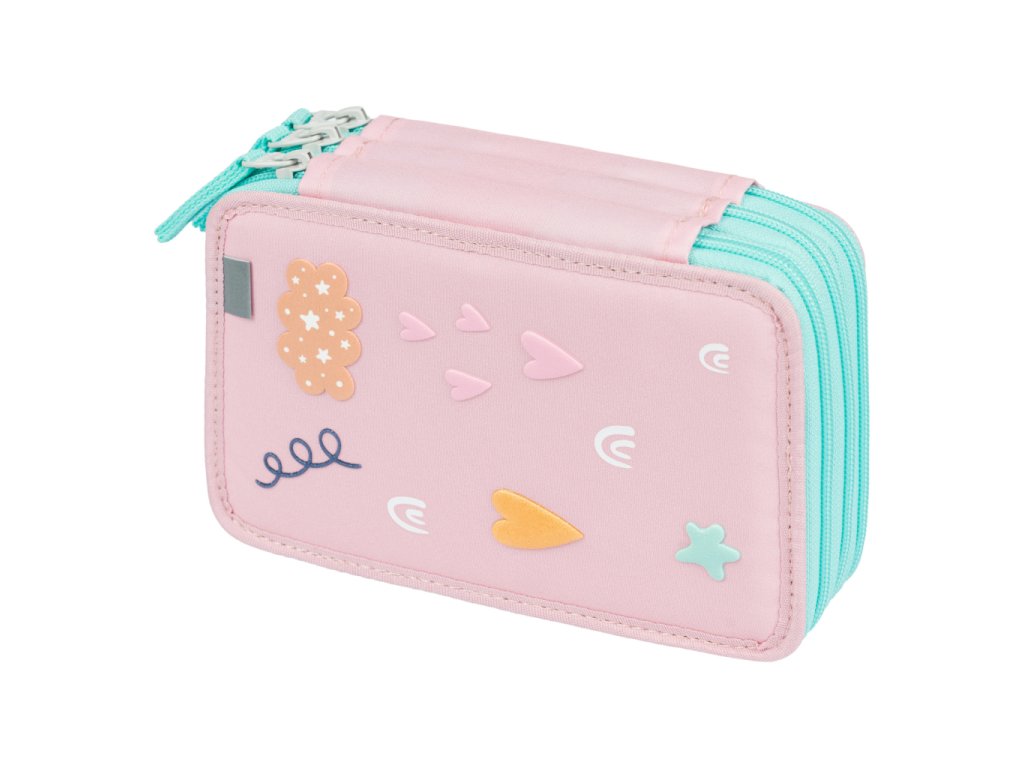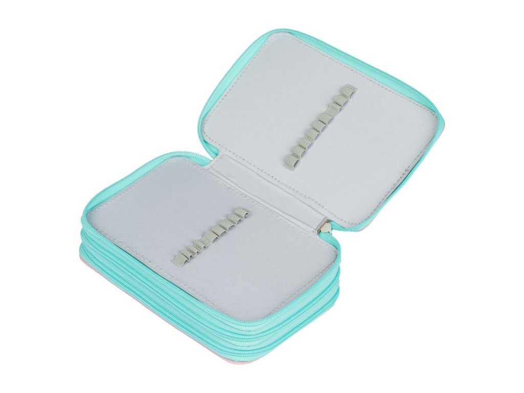 • Extra prostorné třípatrové penály na všechny psací potřeby.• Gumičky přizpůsobené i silným pastelkám a fixám.