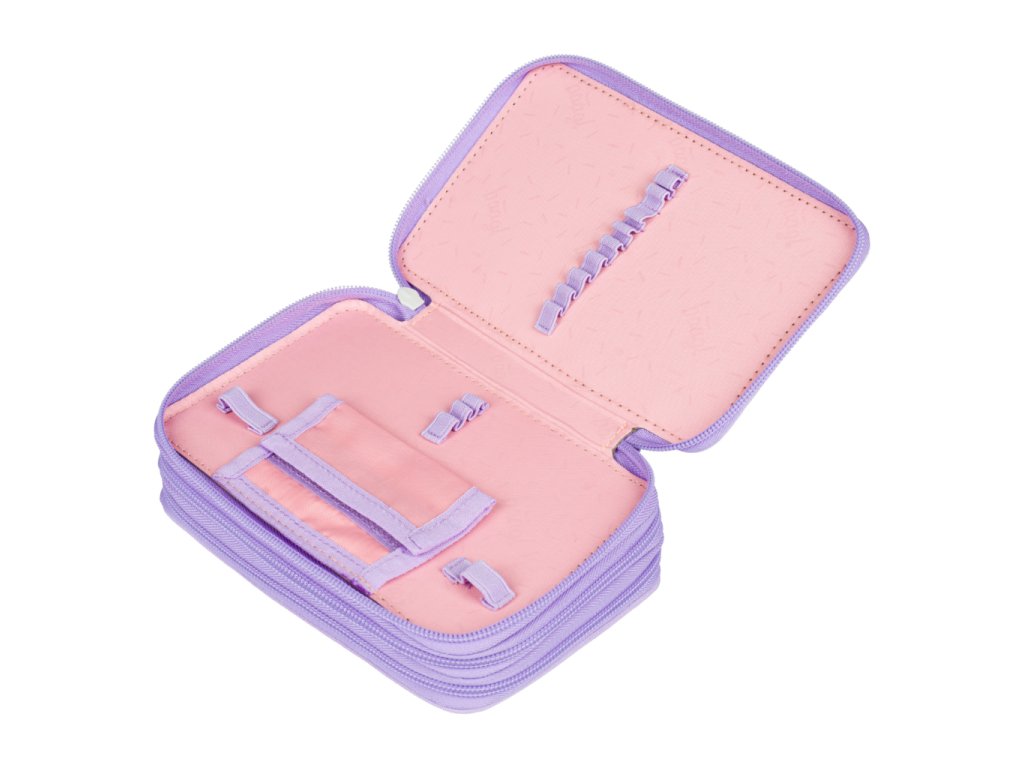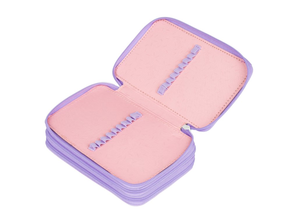 • Extra prostorné třípatrové penály na všechny psací potřeby.• Gumičky přizpůsobené i silným pastelkám a fixám.