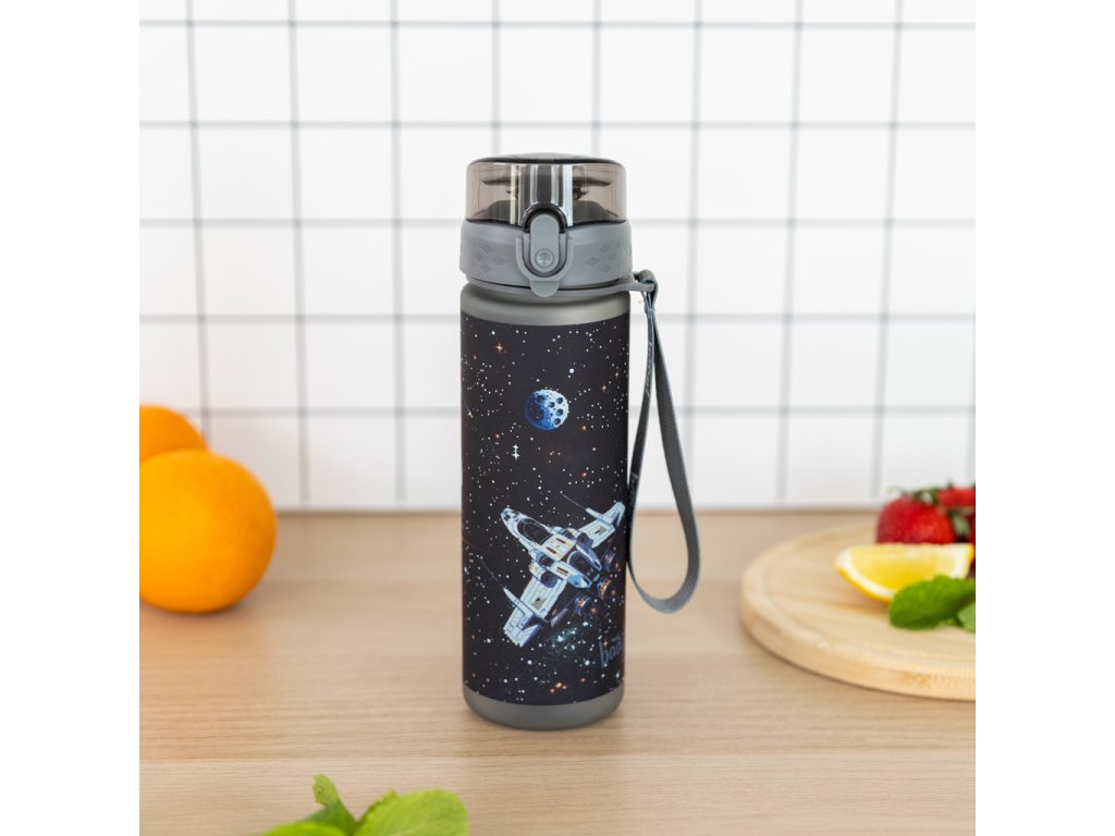 Tritanová lahev na pití s motivem nekonečného vesmíru, za kterou se kluci nestydí.