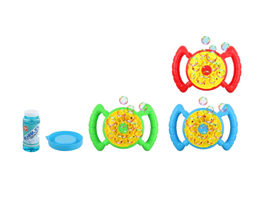 Bublinkovač s 12 tryskami. Přesné rozměry 21x9x14 cm. Baterie 4xAA nejsou součástí. 3 varianty - červená, modrá, zelená.Doplňkové parametry
