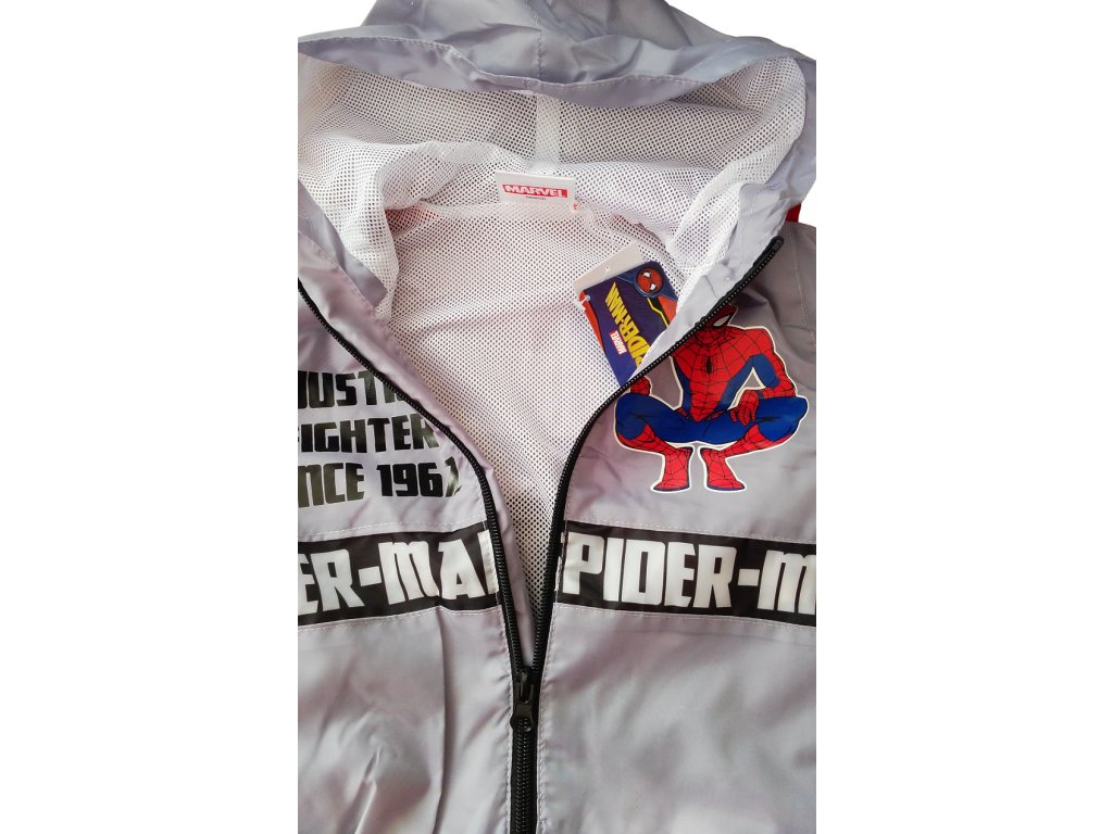 Krásná sportovní bunda Spiderman pro akční kluky. Tato šusťačka je vhodná pro jarní, letní i teplejší podzimní období. Je lehká, podšívka je perforovaná, tvořena síťovinou. Bunda má boční kapsy a její design je velmi povedený.
