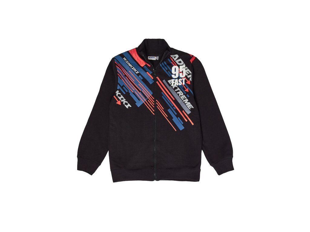 Chlapecká mikina Fast 95 s dlouhým rukávem v černé barvě. Na levé straně na prsou je symbol Fast 95. Stojací límeček a zapínání na zip po celé délce mikiny vás ochrání při nepřízni počasí. Konce rukávů i konec mikiny s elastickým lemem. Pří Vyrobeno v Uzbekistánu. Materiál: 100% bavlna. Látka: Footer 250-260 gr. Návod k údržbě: Při praní se vždy řiďte pokyny uvedenými na štítku! Dostupné velikosti: 128 - 152. Barva: černá.Doplňkové parametry