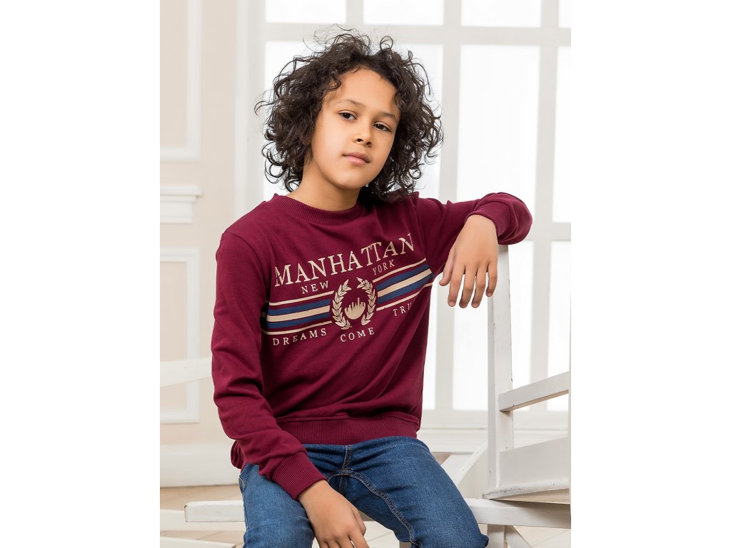 Chlapecké mikina Manhattan. Barva: bordo. Neokoukaný design a kvalitní barva odolná proti seprání. Příjemný materiál - 100% bavlna.Velikosti: 140 - 164. Vyrobeno v Uzbekistánu. Materiál: 100% bavlna. Látka: Footer 250-260 gr. Návod k údržbě: Při praní se vždy řiďte pokyny uvedenými na štítku! Dostupné velikosti: 140 - 164. Barva: bordo.