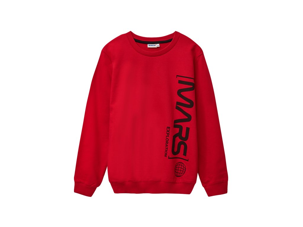 Chlapecká mikina MARS z kolekce Lifestyle. Barva červená. Konce rukávů a spodní okraj s pružnými lemy. Velikosti 128 - 152. Kvalitní zpracování. Materiál 100% bavlna. Vyrobeno v Uzbekistánu. Materiál: 100% bavlna. Látka: Footer nečesaná teplákovina 250 - 260 g Návod k údržbě: Při praní se vždy řiďte pokyny uvedenými na štítku! Dostupné velikosti: 128 - 152. Barva: červená.Doplňkové parametry