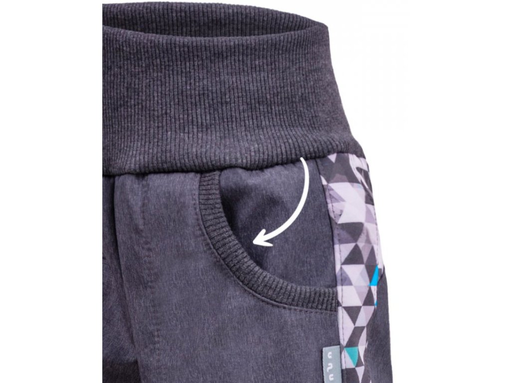 Chlapecké SOFTSHELL KALHOTY s fleecem žíhaná antracitová