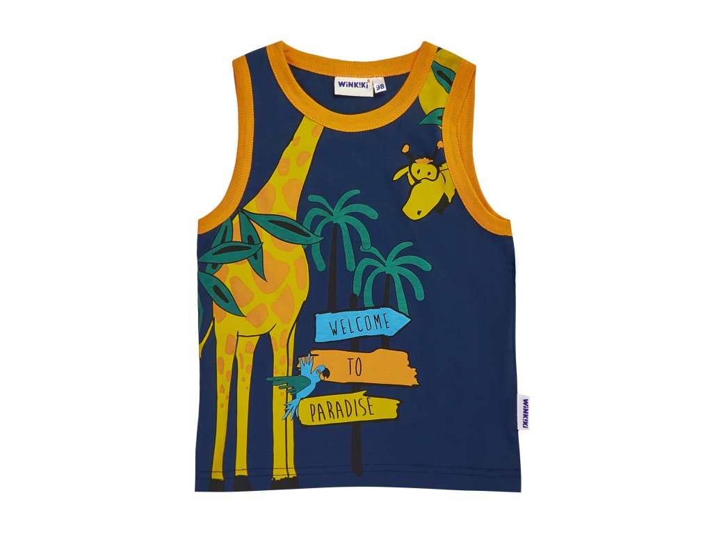 Chlapecké tílko Paradise v tmavě modré barvě NAVY. Pocit léta se přímo nabízí. Kvalitní 100% bavlna. Velikosti 98 - 122. Vyrobeno v Uzbekistánu. Materiál: 100% bavlna. Látka: Supreme 150-160 gr. Návod k údržbě: Při praní se vždy řiďte pokyny uvedenými na štítku! Dostupné velikosti: 98 - 122. Barva: navy.Doplňkové parametry