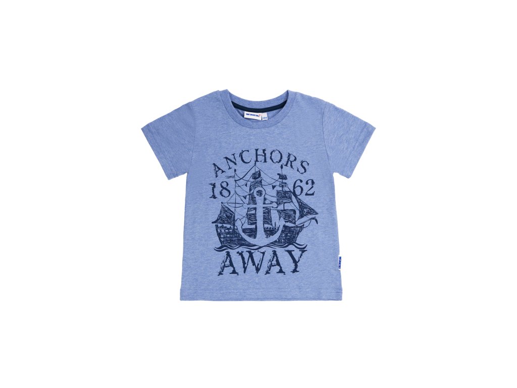 Chlapecké tričko Away s krátkým rukávem v barvě modrý melanž. Na přední straně je velká plachetnice a kotva. Pro dobrodružné povahy. Pocit vzrušení z neznáma. Kvalitní 100% bavlna. Velikosti 98 - 122. Vyrobeno v Uzbekistánu. Materiál: 100% bavlna. Látka: Supreme 150-160 gr. Návod k údržbě: Při praní se vždy řiďte pokyny uvedenými na štítku! Dostupné velikosti: 98 - 122. Barva: modrý melanž.Doplňkové parametry