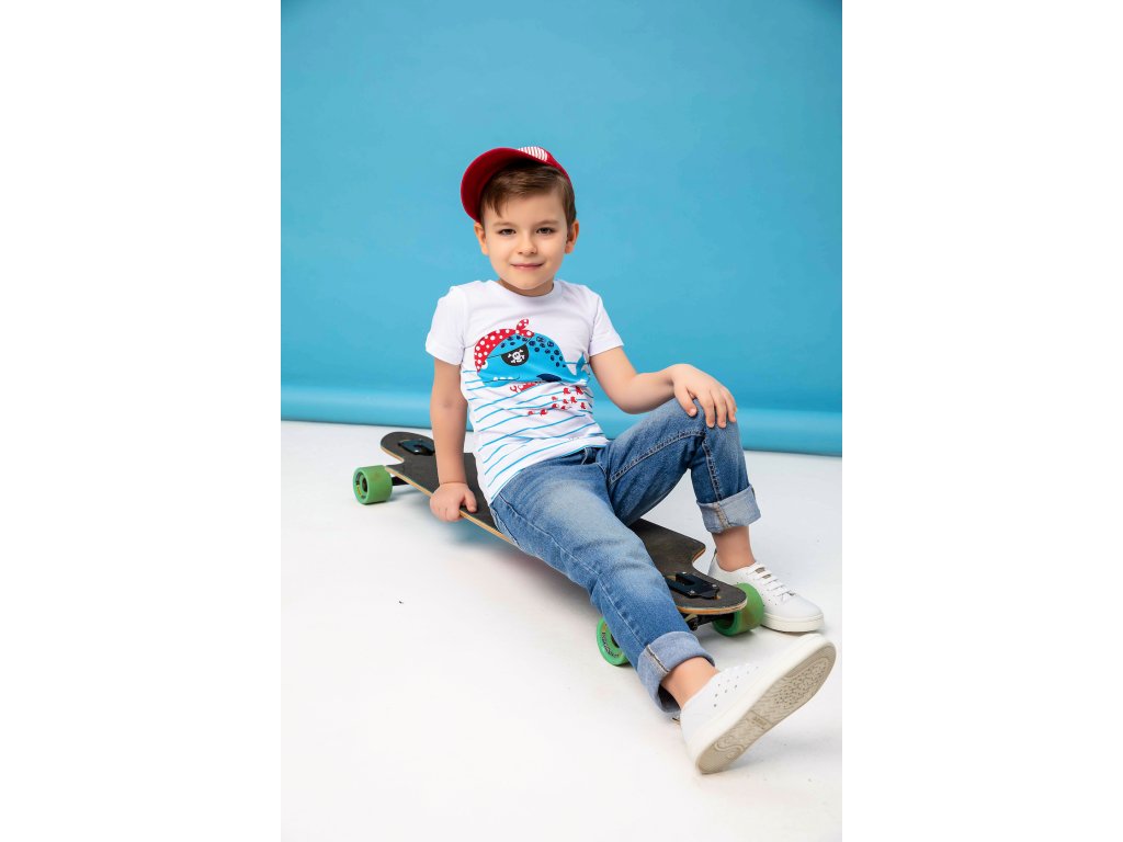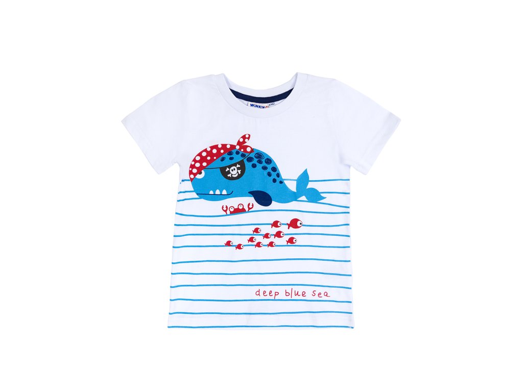 Chlapecké tričko Deep Blue Sea. Barva: bílá. Neokoukaný design a kvalitní barva odolná proti seprání. Příjemný materiál - 100% bavlna.Velikosti: 98 - 122. Vyrobeno v Uzbekistánu. Materiál: 100% bavlna. Látka: Supreme 150-160 gr. Návod k údržbě: Při praní se vždy řiďte pokyny uvedenými na štítku! Dostupné velikosti: 98 - 122. Barva: bílá.Doplňkové parametry