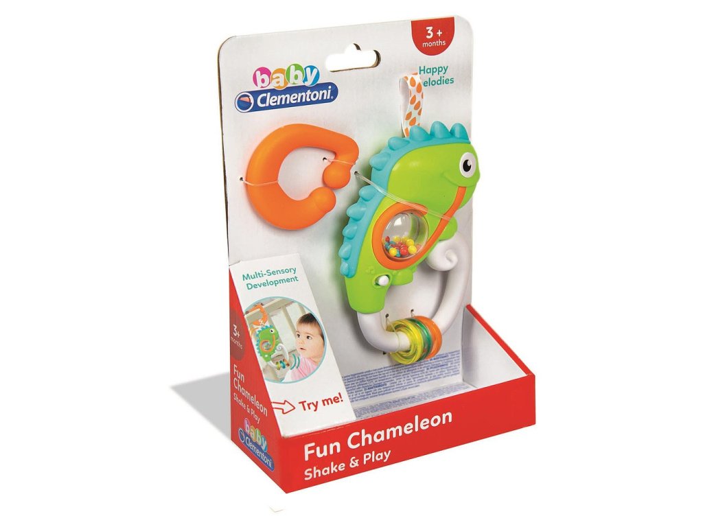 Barevný chameleon přináší miminkům zvuky, pohyb i zábavné objevování. Interaktivní chrastítko Clementoni Fun Chameleon Shake & Play je navrženo tak, aby děti zaujalo barvami, zvuky i různými texturami.