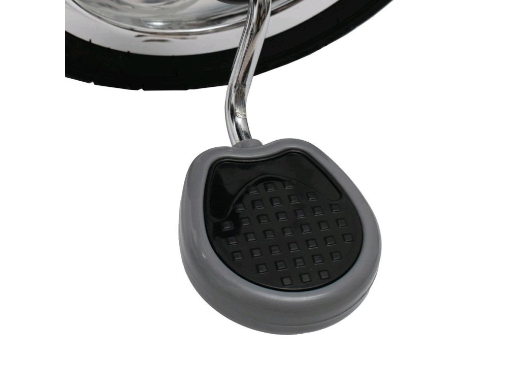 Dětská šlapací tříkolka Baby Mix TYPHOON je multifunkční dopravní prostředek a je typickým příkladem produktů GROW UP - roste zároveň s dítětem. Tříkolku může ovládat jak dítě, tak i rodič pomocí nastavitelné vodící tyče. Po odebrání vodící tyče, sklápěcí stříšky a opěrek bude sloužit jako klasická šlapací tříkolka. Pevná ocelová konstrukce zajistí dítěti bezpečnost a zaručí její používání po mnoho let. Pohodlné a ergonomicky tvarované sedadlo je otočné o 360 stupňů, což umožní dítěti cestovat ve směru nebo proti směru jízdy. O pohodlí a bezpečí během jízdy se stará odnímatelná hrazda, tříbodové bezpečnostní pásy, pohodlné odnímatelné stupačky nebo gumová kola, která skvěle absorbují nerovnosti, poskytují perfektní přilnavost a nevyžadují huštění. Pro uložení hraček nebo potřeb pro dítě je zde praktický úložný košík.