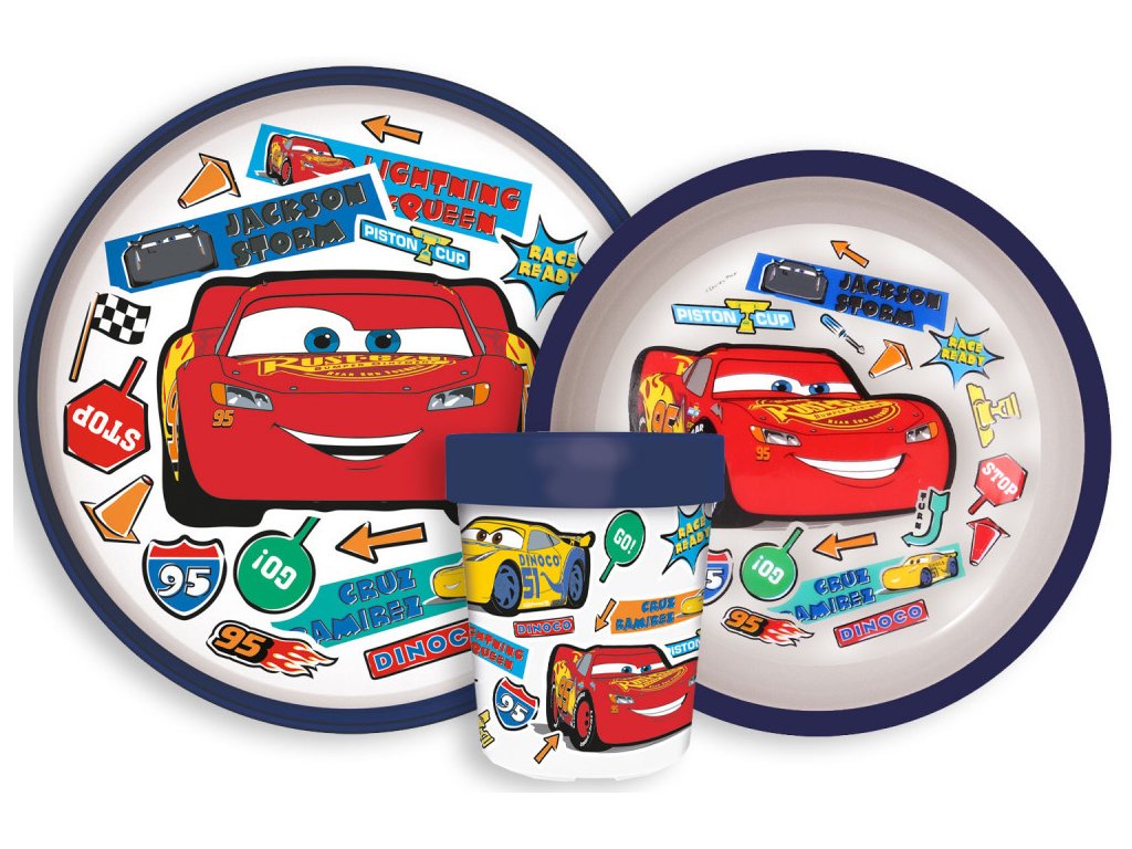 🚗 Dětský plastový jídelní set Cars s protiskluzem a kelímkem