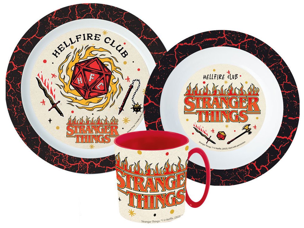 Jídelní sada Stranger Things jen pro odvážné! Stylový třídílný set inspirovaný temnou atmosférou Hellfire Clubu promění každé jídlo v dobrodružství z Hawkins. Ideální pro kluky i holky, kteří milují napětí, akci a originální design.