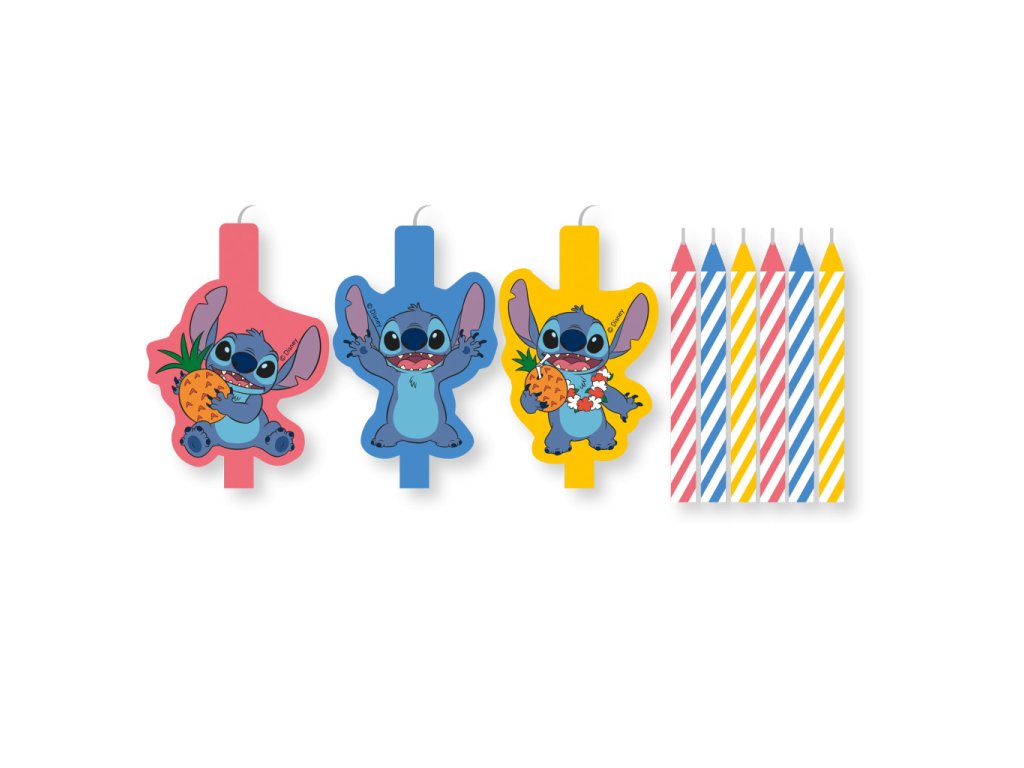 Disney Lilo és Stitch, A csillagkutya tortagyertya, gyertya szett 9 db-os3 db forma gyertya + 6 db spirál gyertya