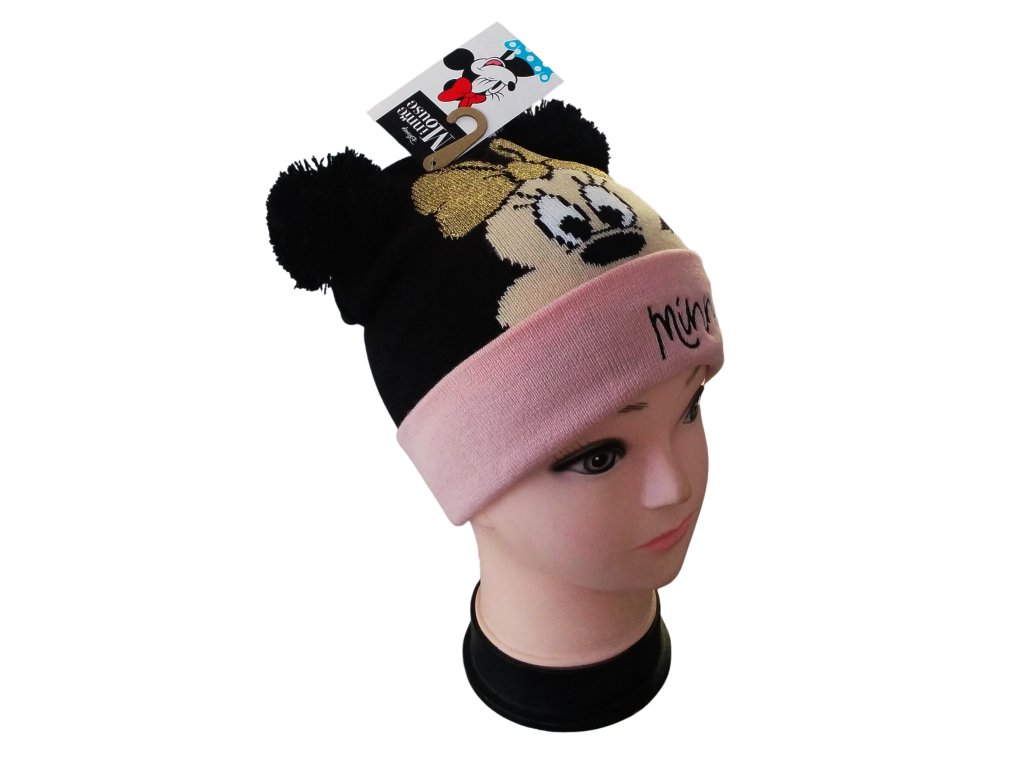 Dívčí čepice MINNIE dvě bambule a zlatá mašle zimní černá