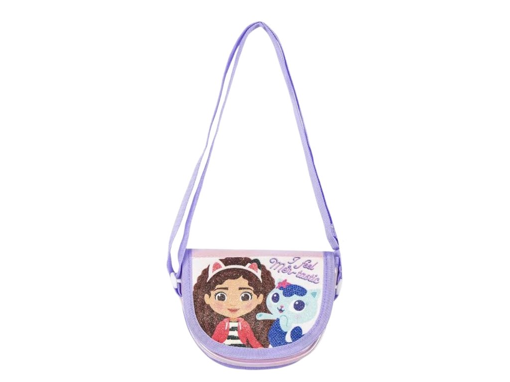 Dívčí kabelka s Gábinkou je nádherný módní doplněk pro naše malé holčičky. Kabelka má sympatické barvičky růžovou a fialovou a přední klopu nádherně třpytivou. Má přezku přes rameno s regulací délky, zapínání na suchý zip a uvnitř jednu velkou kapsu.