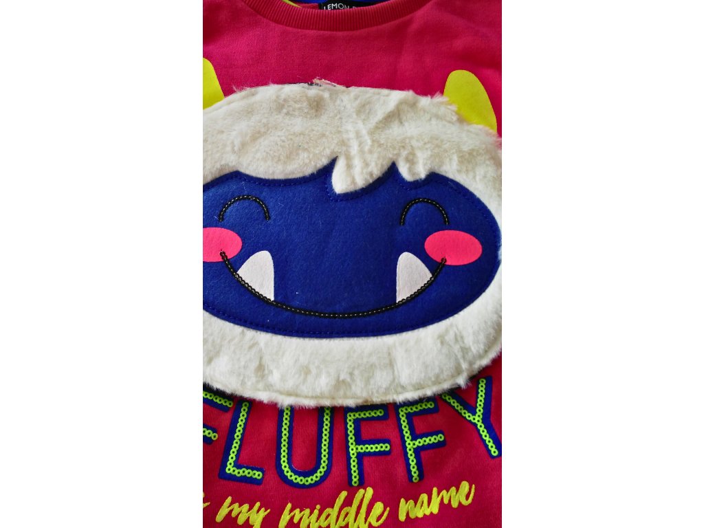 Luxusní mikina Fluffy, kterou děti nebudou chtít odložit. Jedinečná mikina pro holky, které milují chlupáčky. Mikina má 3D chlupatého Fluffyho, který je přichycen suchými zipy na předním dílu a lze jej jednoduše odepnout a sundat. Tato jedinečná mikina je materiálově velmi příjemná, heboučká, rukávy jsou ukončeny do pružných neškrtících manžet.