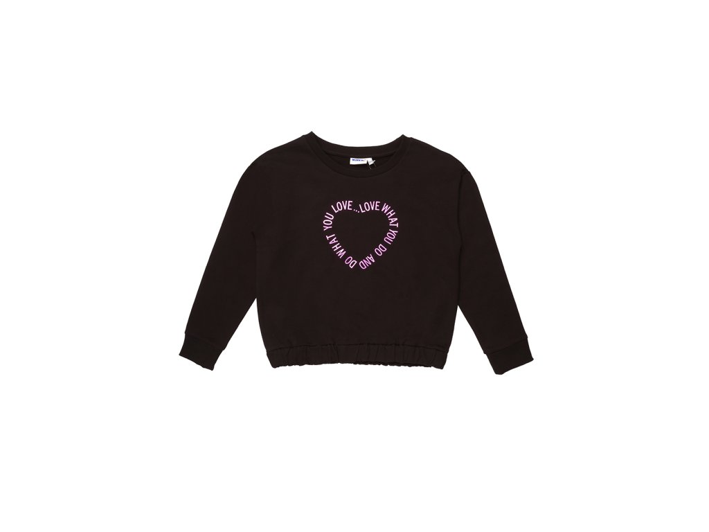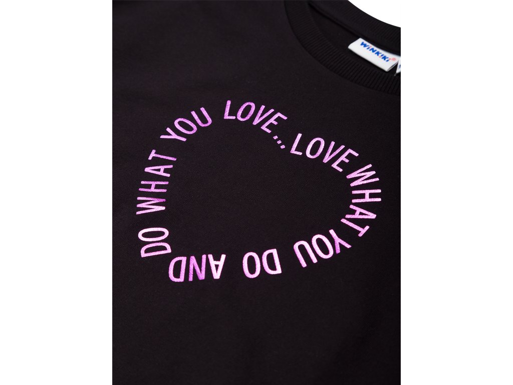 Dívčí mikina s nápisem ve tvaru Srdce 'Love what you do and do what you love' v černé barvě. Spodní část mikiny a konce rukávů s elastickými lemy. Příjemný materiál. 100% bavlna. Velikosti 140 - 164. Vyrobeno v Uzbekistánu. Materiál: 100% bavlna. Látka: Interlok 180-190 gr. Návod k údržbě: Při praní se vždy řiďte pokyny uvedenými na štítku! Dostupné velikosti: 140 - 164. Barva: černá.Doplňkové parametry