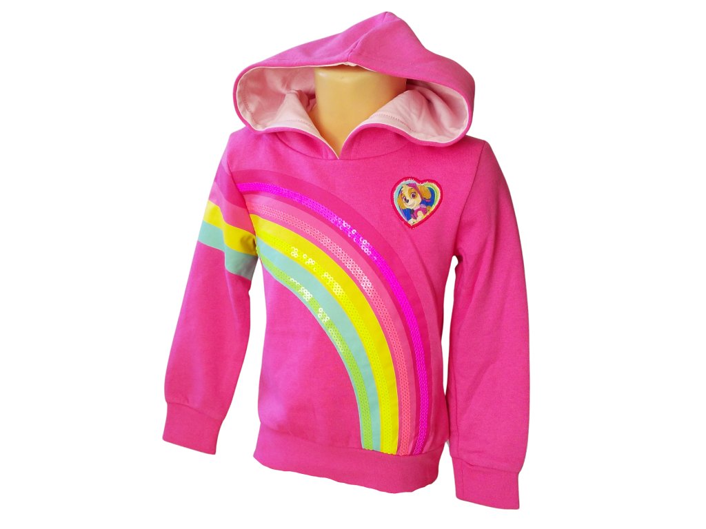 Dívčí mikina TLAPKOVÁ PATROLA duha s flitry přes hlavu