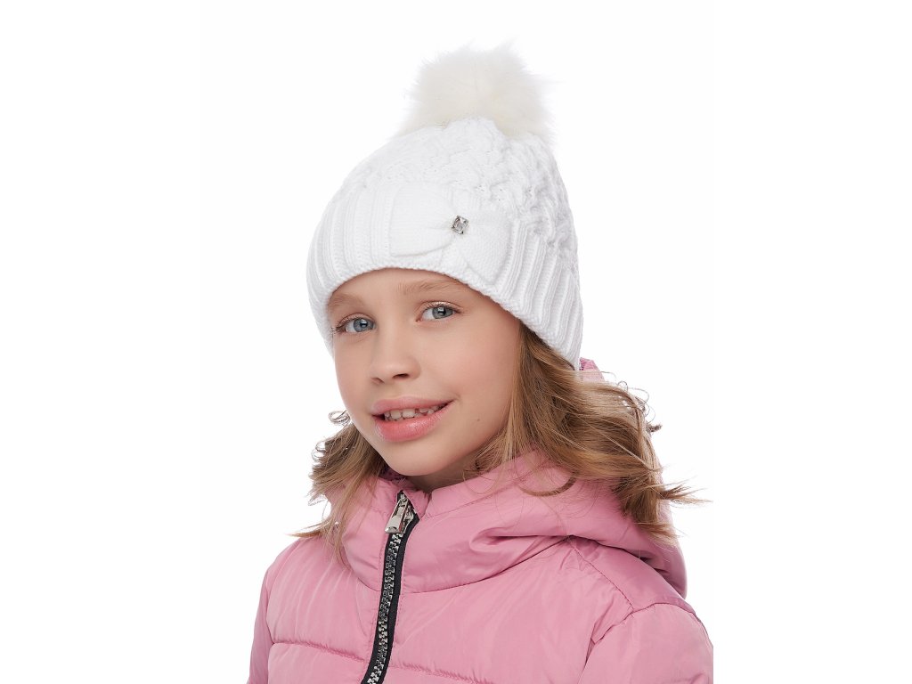 Kvalitní dívčí pletená čepice s podšívkou. Barva: bílá. Velikost: 54 cm. Materiál: 100% acrylic . Materiál podšívky: 100% polyester.Doplňkové parametry
