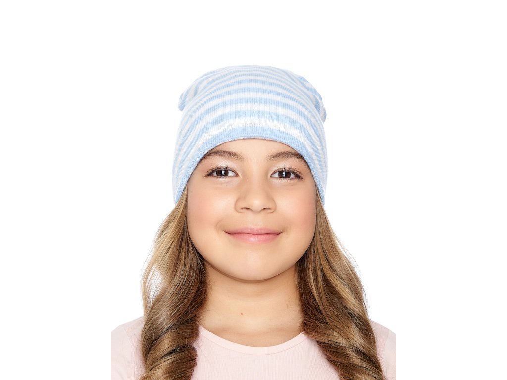 Dívčí pletená čepice - 9536 - bílo-modrá