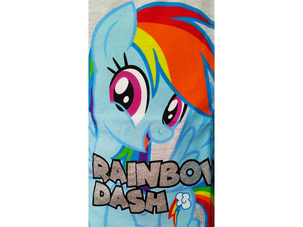 Bavlněné pyžamo My little pony je překrásné dívčí pyžamo s kouzelným poníkem jménem Rainbow Dash. V pase je pyžamko super pružné, nohavičky jsou ukončeny praktickými manžetami a nápis zdoben třpytkami. Velkoplošný motiv zaujme na první pohled a pyžamko se stane velmi oblíbeným.