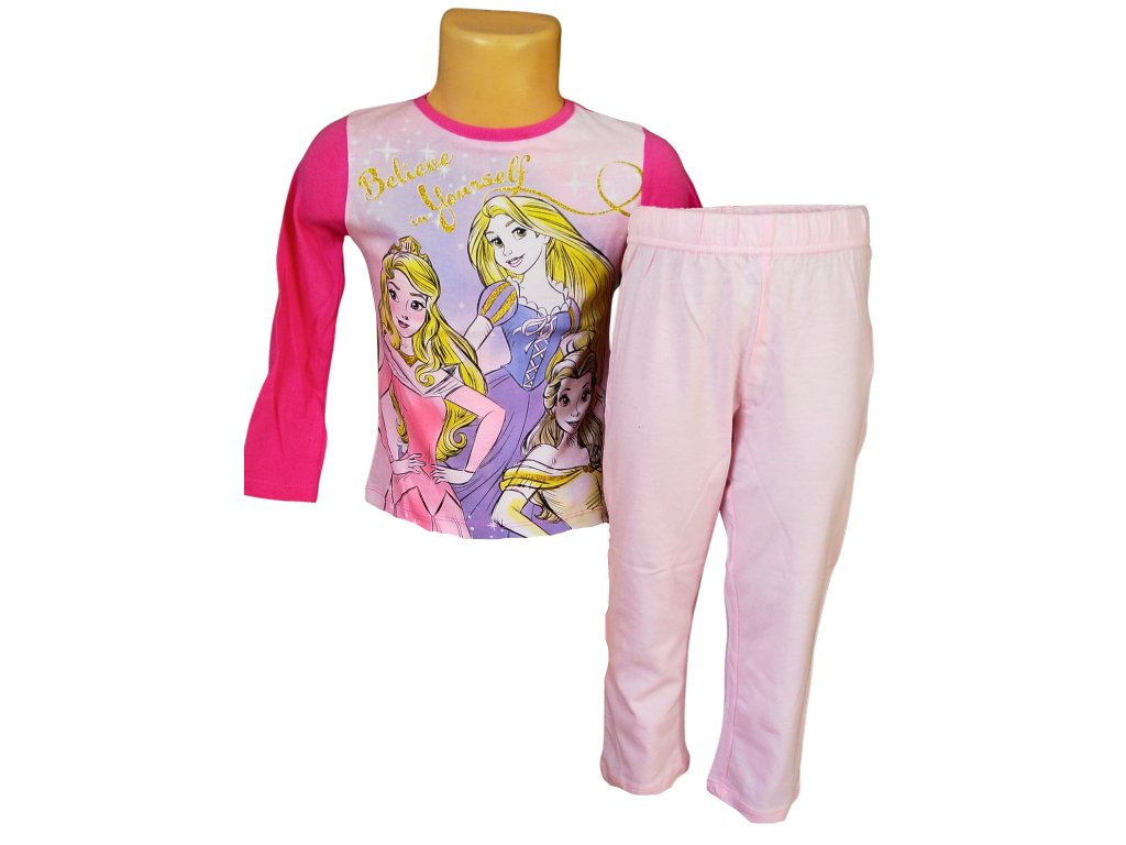 Krásné bavlněné pyžamo pro vaše princezny. Pyžamo s motivy princezen zajistí pohodlný spánek a pohádkové sny. Látkové motivy jsou lehce přizdobeny zlatými třpytkami tak, jak se pro princezny sluší.
