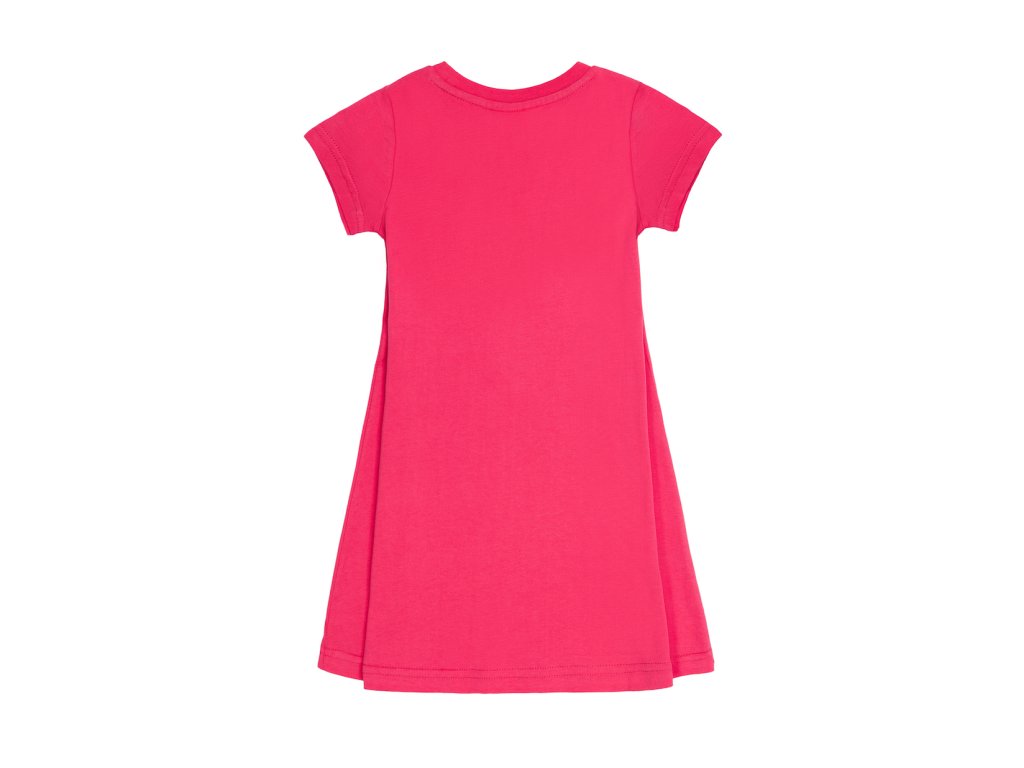 Dívčí šaty Basic. Jednoduché letní dívčí šaty s krátkým rukávem v růžové barvě z kolekce Basic. Hezkým zpestřením je malá mašlička. Velmi příjemný materiál, který je vhodný na každodenní nošení. Kvalitní 100% bavlna. Velikosti: 98 - 122. Vyrobeno v Uzbekistánu. Materiál: 100% bavlna. Látka: Supreme 150-160 gr. Návod k údržbě: Při praní se vždy řiďte pokyny uvedenými na štítku! Dostupné velikosti: 98 - 122. Barva: růžová.Doplňkové parametry