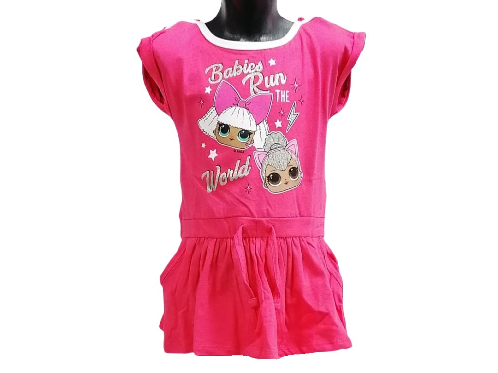 Super pohodlné bavlněné šaty pro letní dny. Dívčí šaty s okatými panenkami LOL nabízejí dostatek prostoru pro pohyb dětí, jsou tedy vhodné na doma, do města i na zahradu. Motiv je krásně přizdoben třpytkami a to se holčičkám velmi líbí.