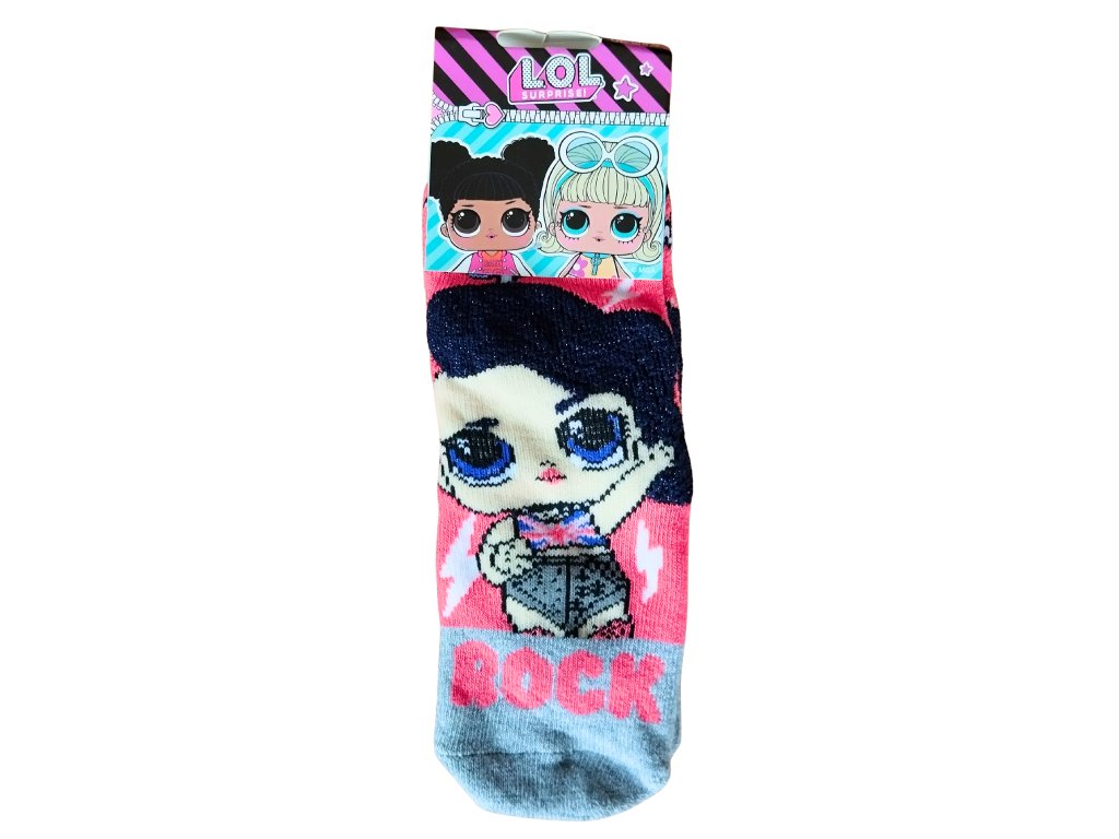 Krásné teplé ponožky s protiskluzem a s vítaným motivem sympatických panenek LOL. Ponožky jsou výborně pružné a jsou lehounce přizdobeny třpytivou lurexovou nitkou.