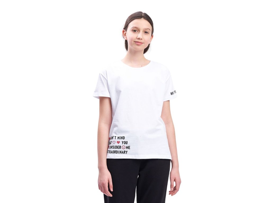 Dívčí tričko Extraordinary. Barva: bílá. Neokoukaný design a kvalitní barva odolná proti seprání. Příjemný materiál - 100% bavlna.Velikosti: 140 - 164. Vyrobeno v Uzbekistánu. Materiál: 100% bavlna. Látka: Supreme 150-160 gr. Návod k údržbě: Při praní se vždy řiďte pokyny uvedenými na štítku! Dostupné velikosti: 140 - 164. Barva: bílá.Doplňkové parametry