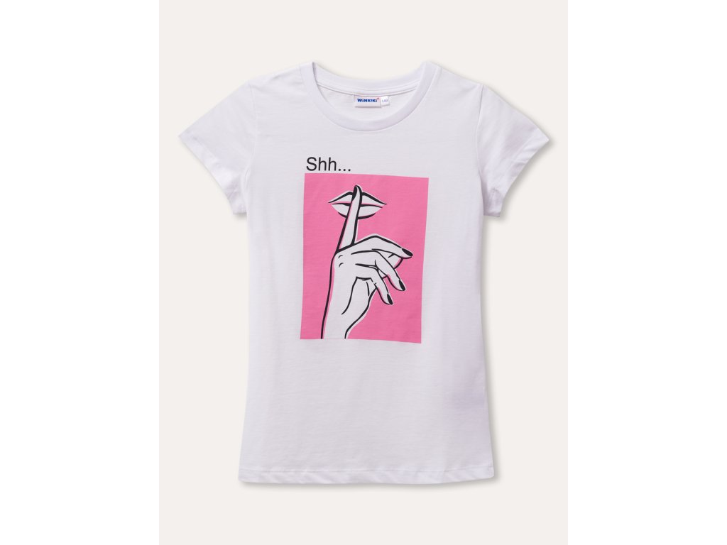 Dívčí tričko Shhh z kolekce Lifestyle. Zajímavý design, kvalitní látka a barvy, které po vyprání nevyblednou. Vhodné do školy i na ven. Barva: Bílá. Materiál: 100% bavlna. Velikosti: 140 - 164.
