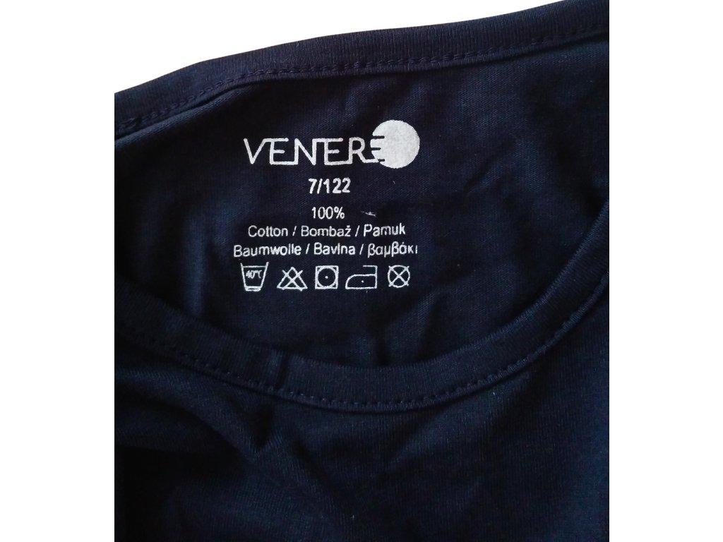 Bavlněné dívčí tričko s nápisem je velmi pohodlné, vyrobeno z vysoce kvalitní bavlny, v lehce áčkovém střihu a v barvě temně modré, přecházející až do černé.