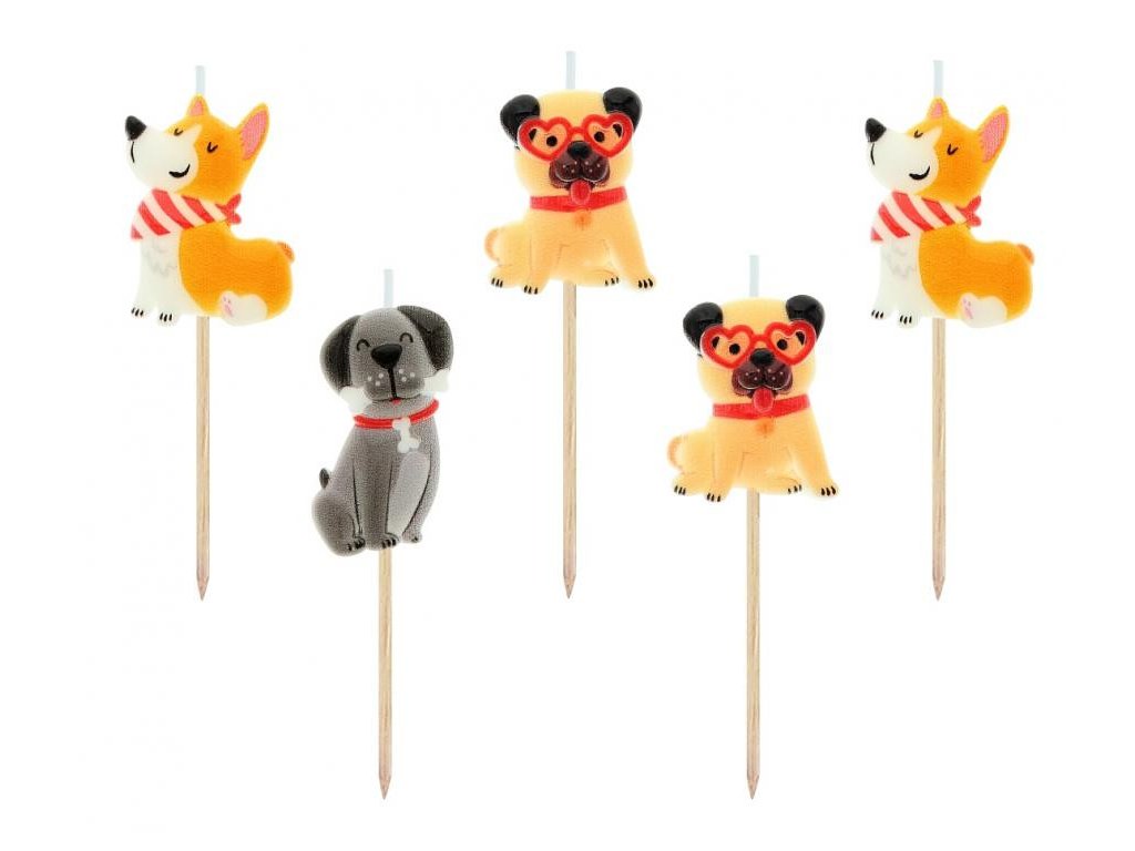 Dog, Kutyás tortagyertya, gyertya szett 5 db-osMéret: 3,5 cm (7 cm pálcával)