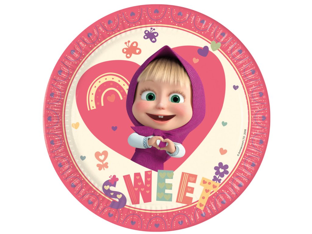 Masha and the Bear Sweet Heart paper plate 8 pcs 23 cm FSC