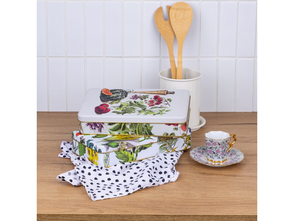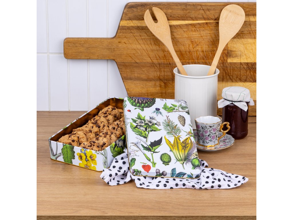 Stylová plechová dóza z s vyobrazením bylin má všestranné praktické využití. Můžete do ní uložit sladkosti, cukroví či jiné potraviny, nejrůznější poklady a další domácí drobnosti. Dóza je vyrobena ze 100% oceli s cínovou vrstvou.Doplňkové parametry