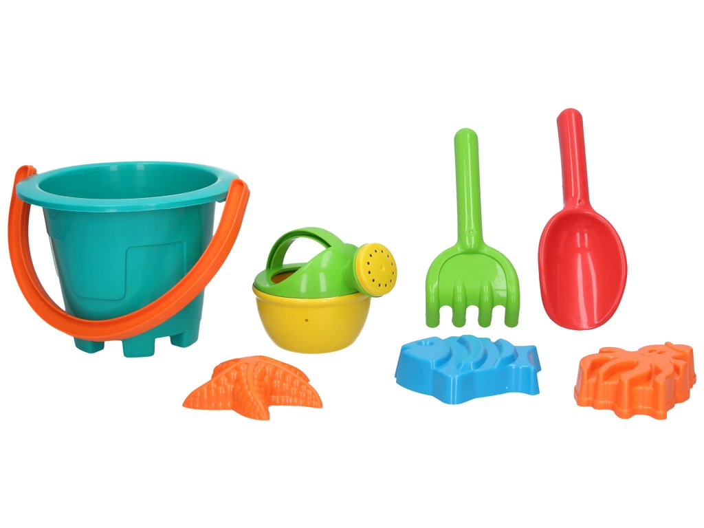 Sada na písek. Rozměry 18x15x20 cm. Součástí kyblík, konvička, lopatka, hrábě, 3 formičky.Doplňkové parametry