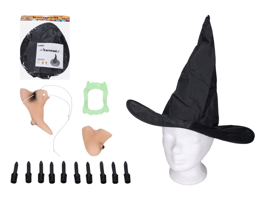 Set karneval - čarodějnice (nos, brada, prsty, klobouk a zuby)