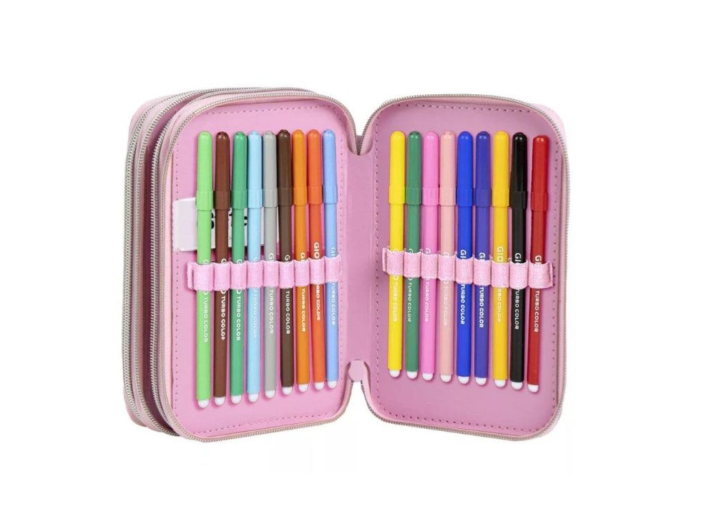 Stylový třípatrový penál Lilo & Stitch v jemné růžovofialové barvě je ideální volbou pro školáky i předškoláky. Penál je plně vybaven kvalitními italskými tužkami a fixy GIOTTO, které zaručují syté barvy, dlouhou životnost a pohodlné kreslení i psaní. Díky třem přehledným patrům má každá pomůcka své místo a dítě si snadno udrží pořádek.