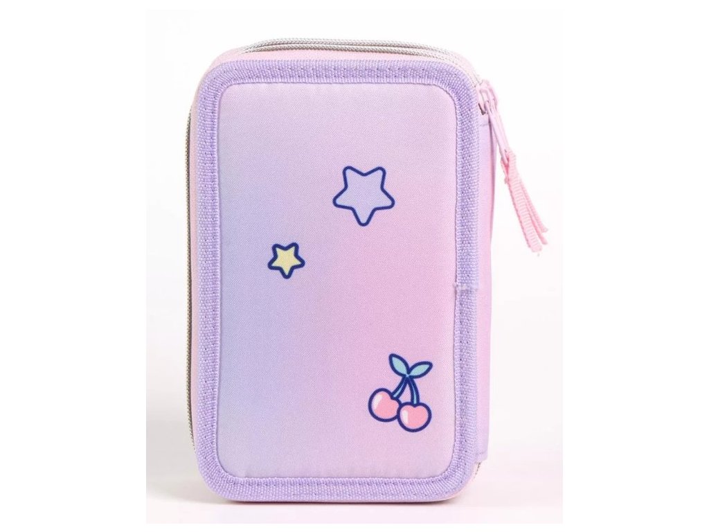 Školní penál třípatrový LILO A STITCH s výbavou růžovo-fialový