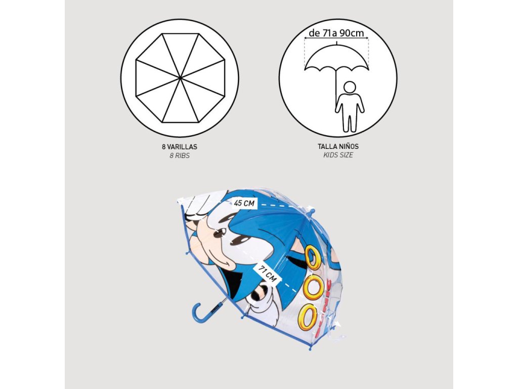 Sonic the Hedgehog transparent children's umbrellaMaterial: 100% PVC